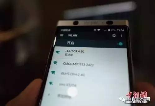 在超高速无线通信系统(EUHT)技术测试的现场,乘客通过手机连接到指定Wi-Fi,可稳定、流畅地上网和观看视频,实际体验和家中Wi-Fi基本没有区别。