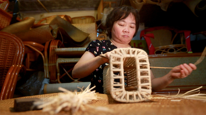 嫦姨家自祖辈起就和藤席打交道了,这门手艺养活了他们家四代人。在接受记者采访时,嫦姨笑着说,自己一出生就对着藤了,由懂事开始妈妈就开始传授怎么做。但是当时只是为了生计谈不上喜欢与不喜欢,但是后来慢慢的就喜欢了,自己已经离不开它了。