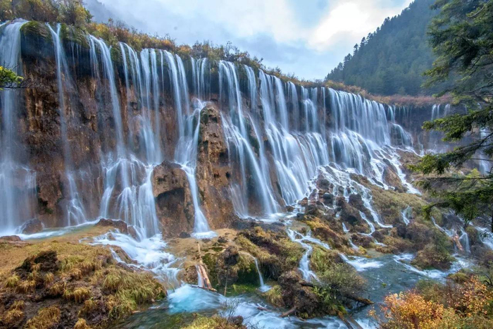 另据封面新闻报道,诺日朗瀑布位于九寨沟景区,海拔2365米,瀑宽270米,高24.5米,是中国大型钙化瀑布之一,也是中国最宽的瀑布。藏语中诺日朗是伟岸高大的意思,因此诺日朗瀑布意思就是雄伟壮观的瀑布。
