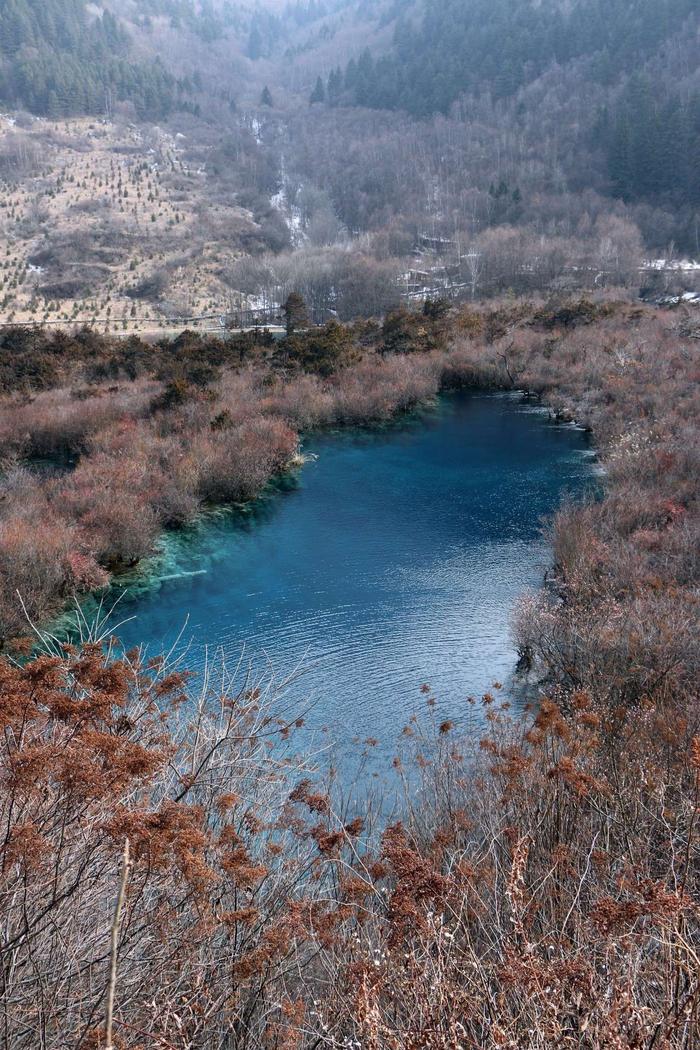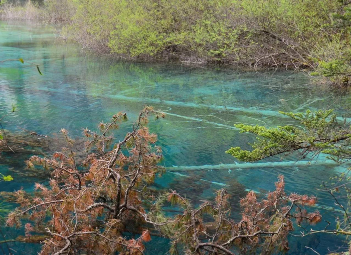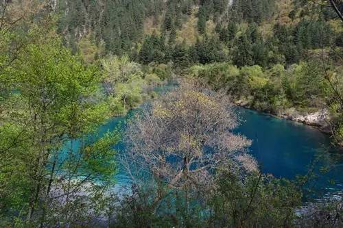 火花海又称火花池,海拔2187米,深9米,位于四川阿坝州九寨沟双龙海与卧龙海之间,湛蓝色的水面上波平如镜。