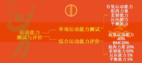 其中单项运动能力测试包括有氧运动能力、肌肉力量、柔韧、平衡和反应能力测试等。