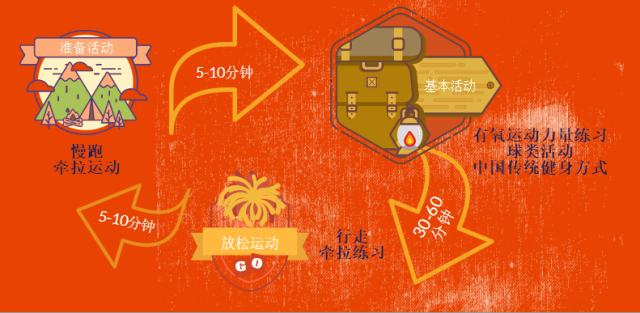 一次完整体育健身活动内容应包括准备活动、基本活动和放松活动三部分: