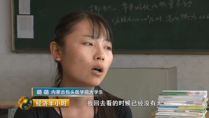 阿鲁科尔沁宾馆餐厅,贫困大学生许立萌正在餐厅忙碌着。她今年只有19岁,是包头医学院大二的学生。尽管已是暑假,但是萌萌的整个暑假却在这家天山宾馆打工。她不仅每天要工作14个小时以上,而且经常一站就是一整天。