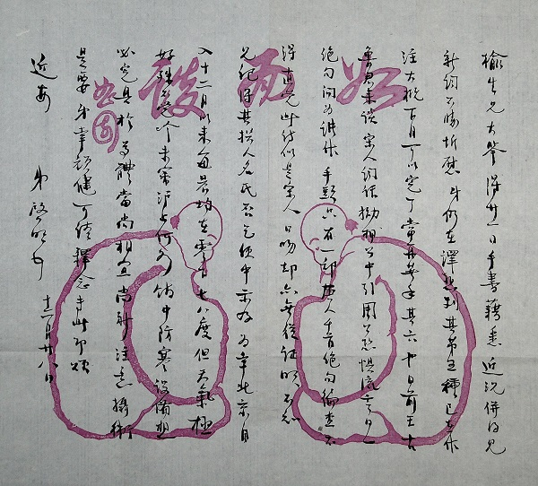 周作人致龙榆生手札,上有“二人面谈”图案