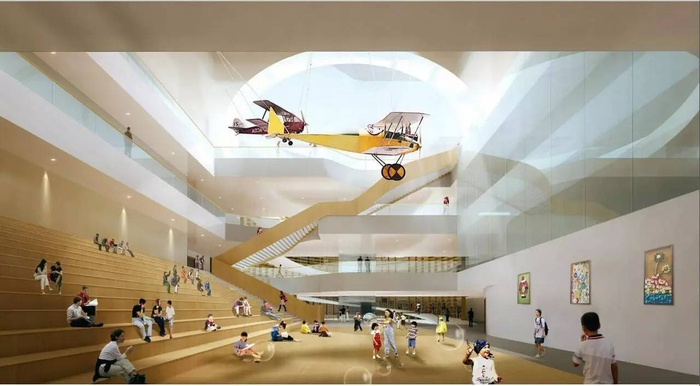 负一层是青年的运动场所,包括武术、瑜伽、水上项目等。记者从设计动态设计效果图中发现,新的青少年宫各楼层间采用了缓坡坡道的上楼方式,缓坡走上去比较安全,同时在坡道边是立体图书馆,孩子们走在坡道上可以随时停下来看书。