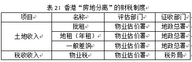 对于土地资源较为紧张的国家(地区),房地分离的“双轨”制,使纳税人易于理解和接受征税目的、对象、时间范围等。表2对香港的财税制度进行了解释和说明。