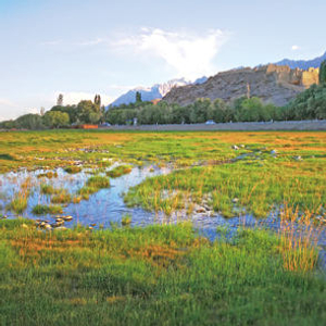 “帕米尔”据称是波斯语,意为“世界屋脊”。我国塔吉克人认为帕米尔是“最高的地方”,水从这里向世界的四方流去,所以“帕米尔”又有了万山之宗、万水之源的寓意。帕米尔的地理地貌极为独特,平均海拔都在4000米以上。青藏高原北部边缘的昆仑山脉、南部边缘的喜马拉雅山脉,还有沿东西走向横贯高原的冈底斯、唐古拉、喀喇昆仑等山脉在此聚拢,就像几条带子被扎成一个结,这在地质学上被称为“帕米尔山结”。五大山脉交汇于此,形成了特殊的气候环境,生态系统也有别于其他区域,孕育了丰富的高原生物多样性。