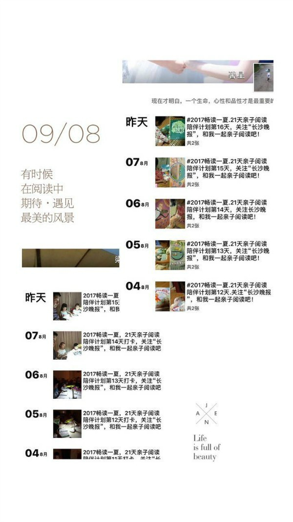 由长沙市关工委联合掌上长沙亲子时间以及国内众多知名出版社共同推出的“2017畅读一夏·21天亲子阅读陪伴计划”第一季活动自7月启动以来,受到广大家长孩子们的热情欢迎和积极参与!