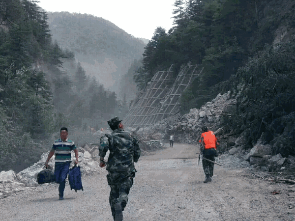张班长说,他们刚从景区返回,基本上哪里有危险我们就去哪里。从地震一开始就一直在那边救援,没有什么休息的时间。