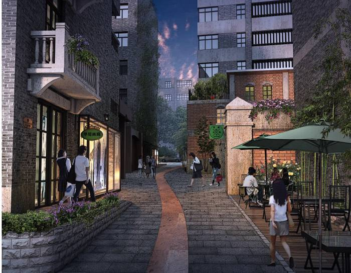 先生坡 两侧都是较为封闭的老旧住宅区,将进行建筑立面整治,营造幽静、静谧的环境。