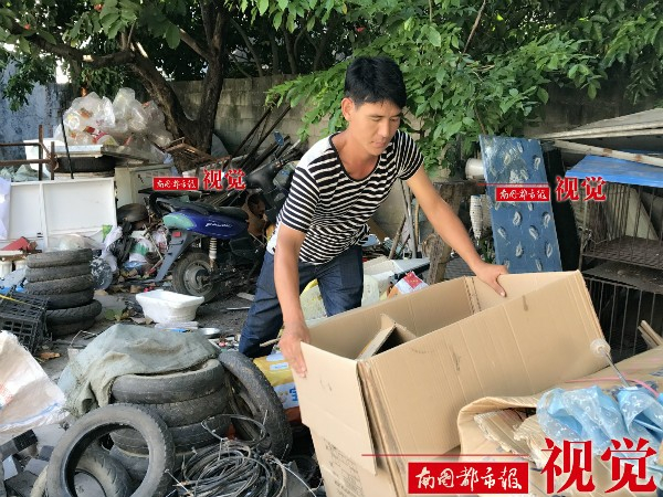 “房子是租的,200元一个月,加上水电费一个月要300元。”宁亮告诉记者,他是安徽亳州人,10多年前,刚结婚的他便与父亲来到儋州从事着收废品的工作。