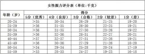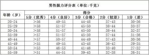 测试方法:测试前,受试者用有力手握住握力计内外握柄,另一只手转动握距调整轮,调到适宜的用力握距,准备测试。测试人员打开电源开关,显示屏上出现闪烁信号,最后定格在“.0”数值上,表明握力计进入工作状态。测试时,受试者身体直立,双脚自然分开,与肩同宽,两臂斜下垂,掌心向内,用最大力紧握内外握柄。测试2次,记录最大值,以千克为单位,精确到小数点后1位。