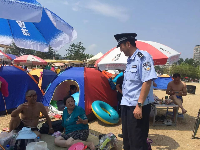 记者来到了傅家庄海滨浴场,此时沙滩上已经摆满了帐篷,从河北来大连旅游到陈先生和老伴坐在帐篷附近的阴凉处,他告诉记者,在海滨浴场感觉秩序挺好,搭帐篷也没有遇到要钱的,“还能看到民警巡逻,提醒游客注意安全,保管好东西,我们感觉挺安全。”陈先生。据悉,公园还免费为广大游客朋友们提供大型遮阳棚。
