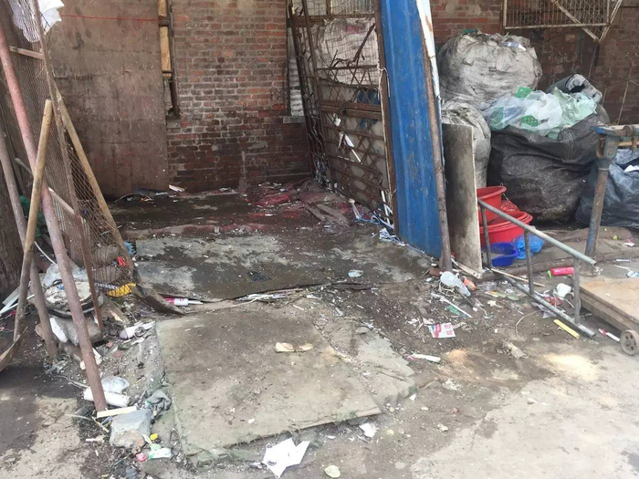 记者随警方整治人员一起来到位于中长街的一处废品收购站。这家收购站内摆放着许多废旧金属,比如废旧煤气罐、暖气片,还有各种生活废品等。由于摆放十分混乱,这个废品收购点给人一种极其脏乱的感觉。加之天气炎热,很多废品摆放地周边污水横流,发出异味。