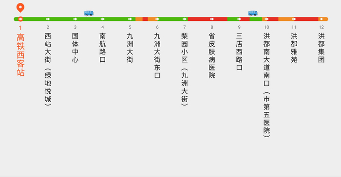 | 12 | 高铁巴士8线 | 高铁西客站⇔洪都雅苑 |