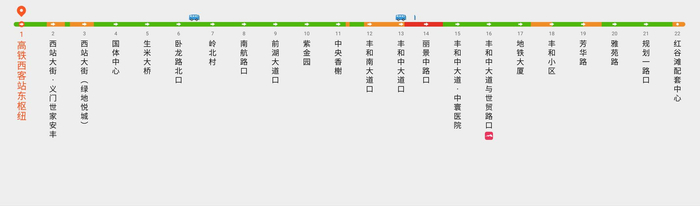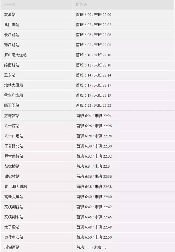 | 站号 | 站点名称 | 时间间隔 | 换乘地铁 |
