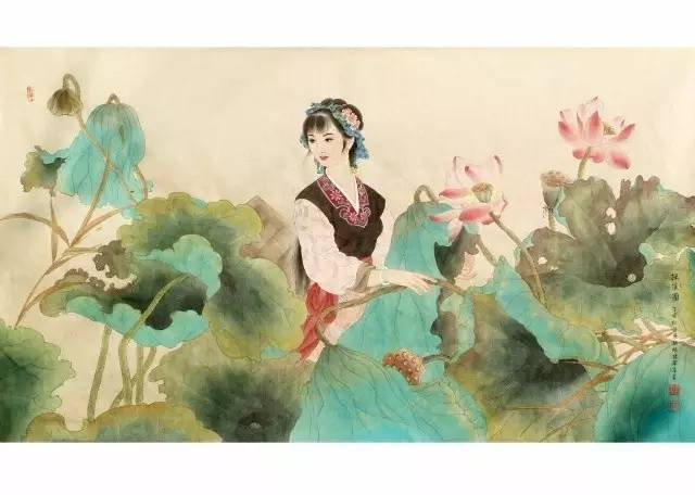 “耶溪采莲女”,再说说这越地的好妹子。耶溪就是若耶溪,在浙江绍兴。绍兴可是春秋古越国的都城哦。江南可采莲,莲叶何田田。采莲姑娘们放声歌唱。见到岸边有生人,笑盈盈地把船儿划入藕花深处。你以为她们真的是害羞?不过是“佯羞”。李白有另外一首《采莲曲》为旁证:“若耶溪傍采莲女,笑隔荷花共人语。”说说笑笑,大大方方,人见人爱!