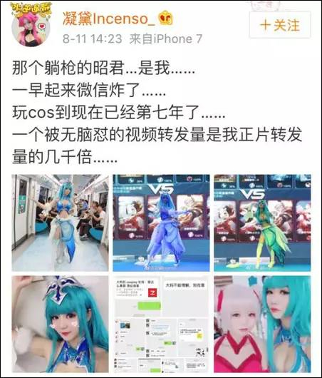 凝黛承认了自己cosplay成昭君是去地铁拍广告。但当网友问及被大妈怒骂是怎么回事,她却一概避而不谈,要么点赞,要么顾左右而言他。