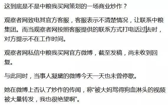观察者网也联系上凝黛本人,她只是再一次强调自己没有炒作,当问及被大妈怒骂是否是摆拍时,对方便不再回复。