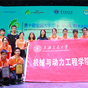 第十届全国节能减排社会实践与科技竞赛上海交通大学选拔赛由机械与动力工程学院牵头,在校团委的指导下,于2017年3月正式启动,吸引了来自机械与动力工程学院、电子信息与电气工程学院、材料科学与工程学院等院系学生的踊跃报名。在校内评审阶段,邀请了王如竹教授、吴静怡教授、章俊良教授、王丽伟教授、翟晓强教授等专家学者选拔、评审、指导与完善作品,通过近4个月共6次校内答辩,推选出15件作品代表交大进入全国决赛。积极备战决赛过程中,邀请专家教授针对决赛作品进行3轮模拟答辩、并不断提出完善意见。在全国决赛的舞台上,上海交大学子的科创作品与精彩答辩彰显了交大风采,为母校再添荣光。
