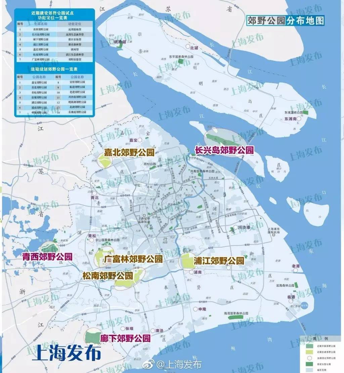 目前本市已开放或在建的7家郊野公园中,廊下郊野公园位于金山廊下镇区西侧,以“农”为特色,打造集“现代农业科技、科普教育、文化体验、旅游休闲于一体”的“多功能农场”型郊野公园。青西郊野公园位于青浦区大莲湖畔,定位为远郊湿地型郊野公园。长兴岛郊野公园位于长兴岛东北部,定位为远郊生态涵养型郊野公园。浦江郊野公园位于黄浦江东侧、大治河以北,定位为近郊都市森林型郊野公园。嘉北郊野公园位于嘉定新城西北部,定位为近郊休闲型郊野公园,计划2017年9月试开园。广富林郊野公园位于广富林街道西侧,定位为文化遗址型郊野公园,预计2017年年底开园。松南郊野公园位于黄浦江上游、车墩镇南部,定位为滨江生态森林型郊野公园,预计2018年年底开园。