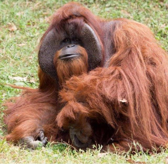 就这样,Chantek的余生都活在动物园,它跟动物园里其他猩猩格格不入,经常趴在那,一动不动。