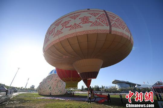 图为“哈萨克毡房热气球”于当日亮相。 杨艳敏 摄