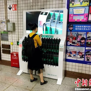 这种设备共有48个雨伞槽,在上海轨交2号线的部分站点投入使用。 王子涛 摄