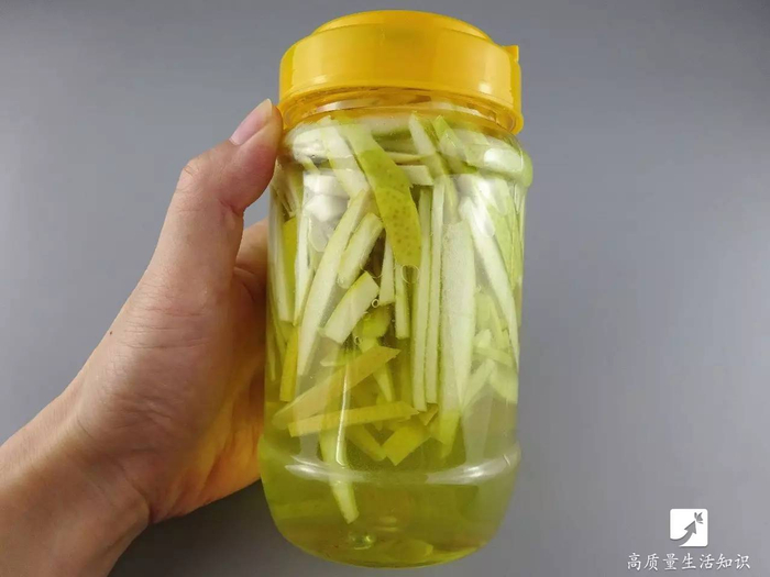 将柚子皮丝装入瓶子中