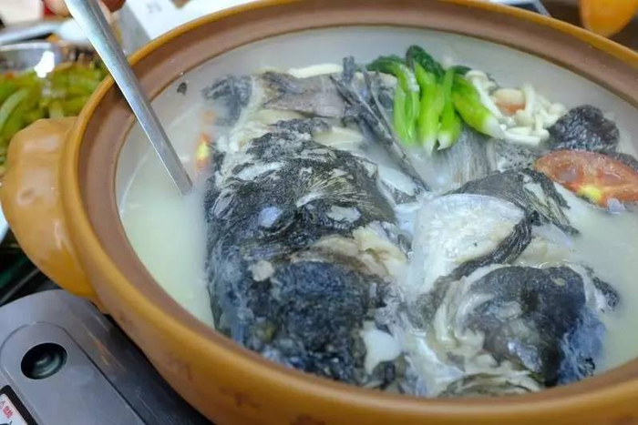 第二步:吃胶原蛋白最丰富的部位——鱼脸和鱼唇。入口时滑嫩鲜美饱含浓汤,有美容养颜的功效。