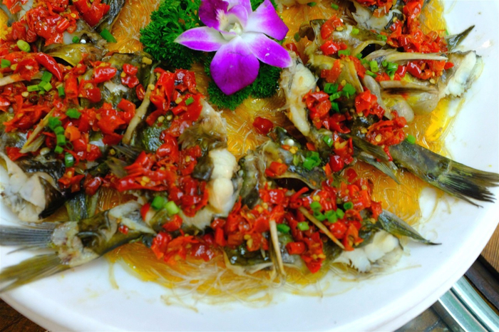 ▲剁椒粉丝黄鸭叫的做法颇有新意,粉丝铺底吸收了鱼肉的鲜香滋味,剁辣椒的独特酸辣味道是画龙点睛的一笔,鲜香的酸味骚挠舌尖,劲爽的辣味又重新抖擞味蕾,加上黄鸭叫本身的嫩滑肉质,尤其美味合拍。