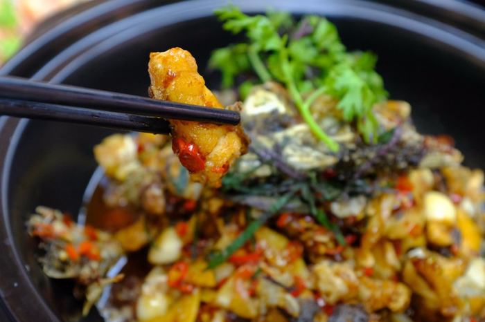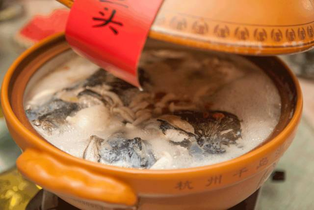 这里的千岛湖野生鱼头有经典白汤炖、碎椒紫苏炖、菌菇金汤炖、八宝养生炖、老坛辣椒蒸等多种做法,鱼尾可以选择红烧、豆豉蒸或是加工成鱼丸。最受欢迎的是经典白汤炖的做法,千岛湖野生鱼头为了最大限度保留营养,从清理到烹饪控制在25分钟内,而每一份鱼头都需装在有专属编号的砂锅里,用基础的食盐,配以简单的姜片及少量香菜,慢慢炖煮成一锅奶白的汤汁,将最原汁原味的鱼头锅呈现在客人面前。