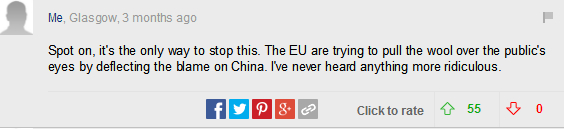 Me.:完全正确!这是唯一的解决方法了。欧盟想要把矛头指向中国,从而遮住公众的眼睛。我从来没听过比这更荒诞的言论了!