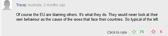 Tracey:当然了,欧盟就知道指责别人。这就是他们平时做的。他们永远不反思自己的行为,从不认为自己的行为才是造成这些国家目前困境的根源。