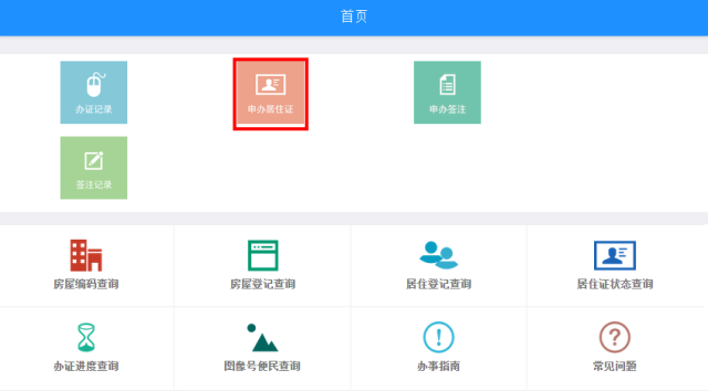 3.点击“申办居住证”