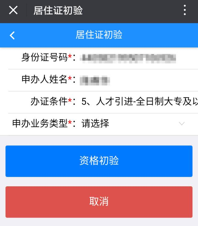 5.资格核验通过后,就可以填写资料,上传文件办理居住证啦!