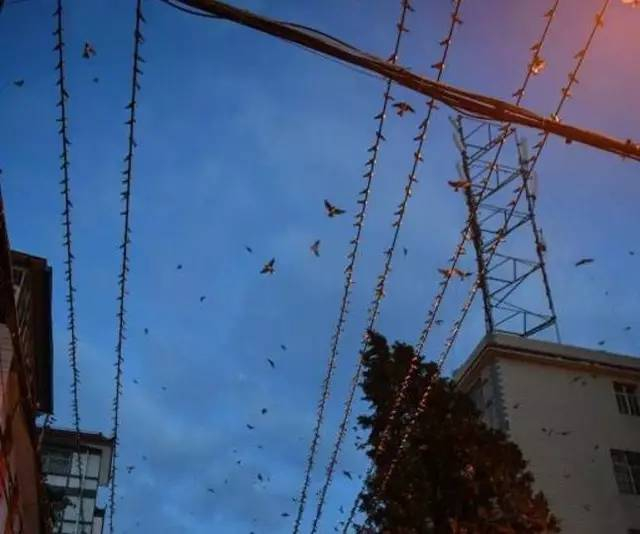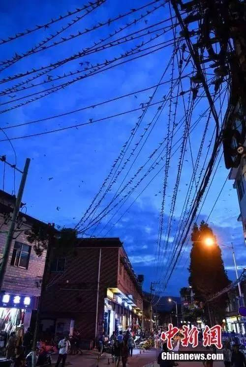 据爆料,夜幕刚起,燕子像人们一样从四面八方飞来;亮灯时分,在燕子的叽叽喳喳叫声中,数量达到顶峰;晚上9点,无论人群是否散去,燕子就会自觉“闭口”,停在电线上、窗台上相依相偎,等天明才飞走。