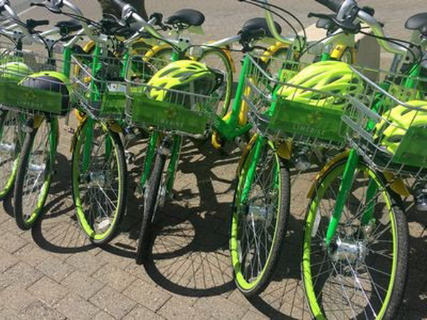Limebike 公司在西雅图投放的共享单车同时提供头盔