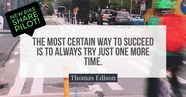 西雅图交通部门网站显示的“成功最确定的方法是再次尝试”以宣示发展市场化的无桩共享单车的决心。