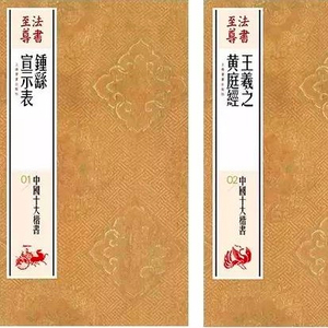 《法书至尊•中国十大楷书》选取历代法帖中最著名的十种楷书作品,包括《钟繇宣示表》《王羲之黄庭经》《瘗鹤铭》《崔敬邕墓志》《智永真书千字文》《欧阳询九成宫醴泉铭》《褚遂良雁塔圣教序》《颜真卿颜勤礼碑》《柳公权玄秘塔碑》《赵孟頫妙严寺记》。十种楷书风格上既可见各时代风尚,又可见楷书风格流变,既可见楷书发展轨迹,又各具经典性,实为千余年楷书史之概括。呈现形式上,我们甄选优秀底本,以册页装的传统装帧形式,原色原大精印,再现法帖的典藏价值。图书除完整呈现包括题跋在内的法帖全貌外,另附图文对照别册,配以详尽的释文与注解,便读者欣赏学习。