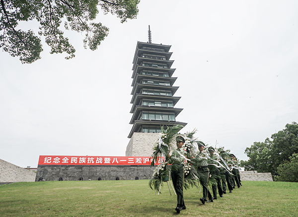 上午9时,在淞沪抗战纪念公园“汇聚”胜利火炬台前,驻沪部队指战员在无名英雄纪念碑前向抗战先烈敬献花篮,鸣响和平之钟。抗战将领后代、宝山区各界代表为淞沪抗战纪念馆二期扩建工程奠基。新馆将全面展示上海人民抗战的历史场景,成为广大市民接受爱国主义教育的又一生动而直观的公益性教育场馆,于2018年8月13日对外开放。