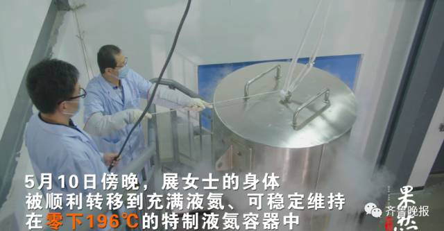 展女士的身体被顺利转移到一个充满液氮、