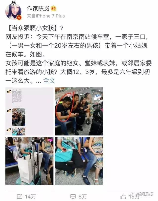 作家微博爆料男子在车站当众猥亵女童