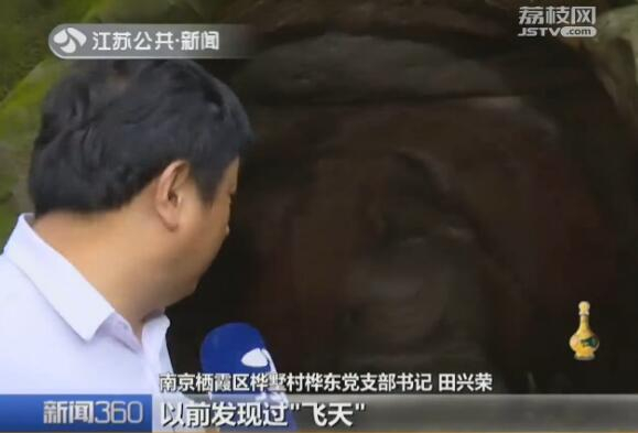 在最大的石窟前记者发现了这段铭文,但是由于风化严重,已经无法辨识。而在铭文旁记者还发现了,2006年南京市政府文物保护单位的石碑。一个如此破败的石窟为何是市级文物保护单位,田兴荣告诉记者,2002年石佛庵石窟刚被发掘出来时,里面出现了让人震惊的"飞天"图像。