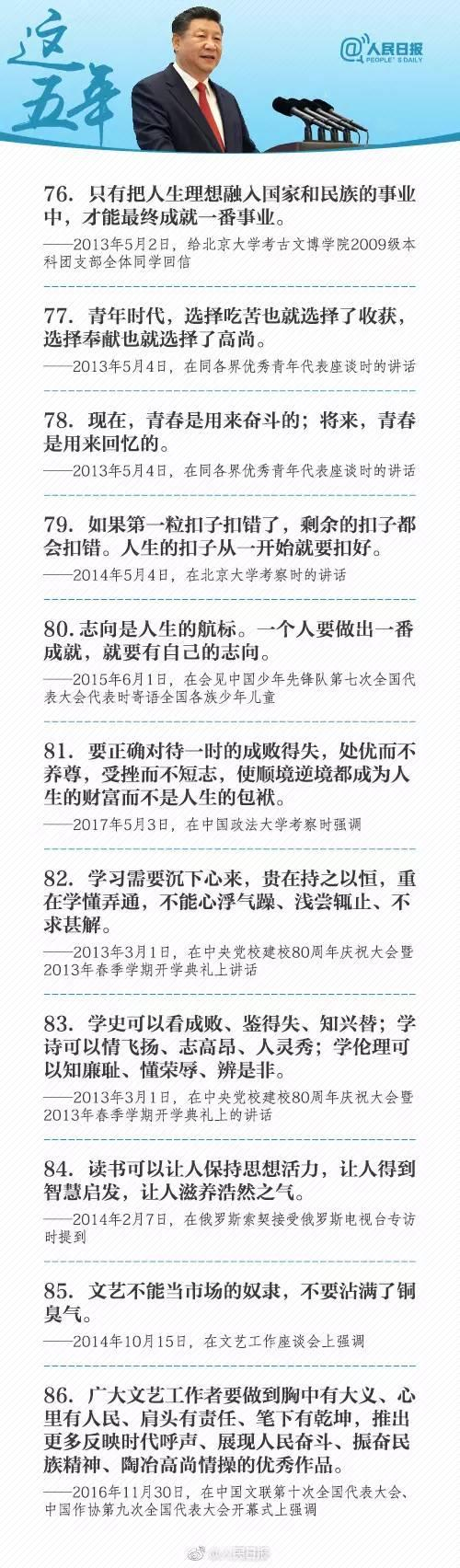 原标题:划重点!习近平治国理政100个金句,读懂十八大以来这五年