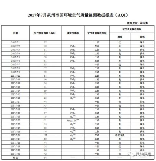7月鲤城区环境空气质量状况报告出炉