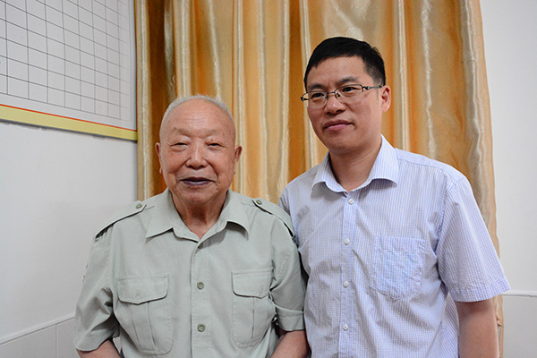 抗战老兵常淼(左)和南京师范大学教授王志龙(右)合影。