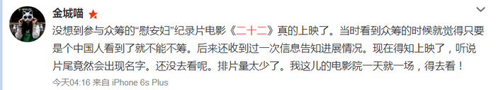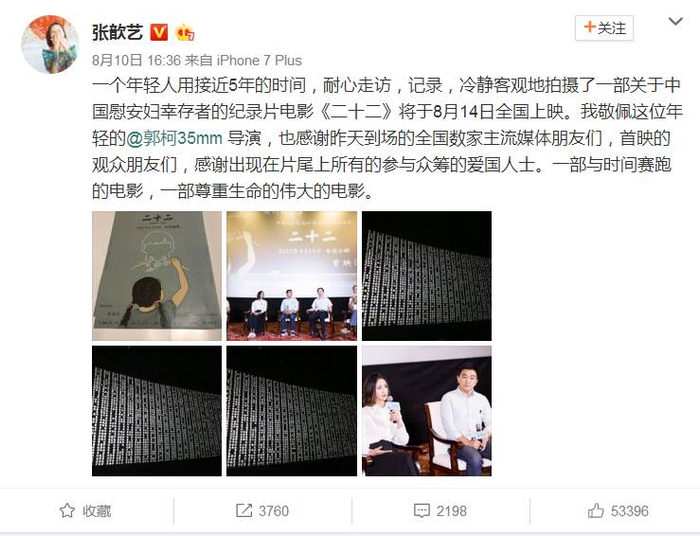 今年7月,纪录片《二十二》曾在国内部分城市点映过。总计有32099名热心民众众筹观看了这部影片。
