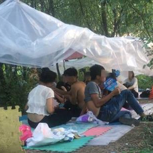 静海曹官庄村北枣树林深处,十多名传销人员搭着简易遮篷,在野外“躲负面”,即逃避打击。新京报记者 赵吉翔 摄