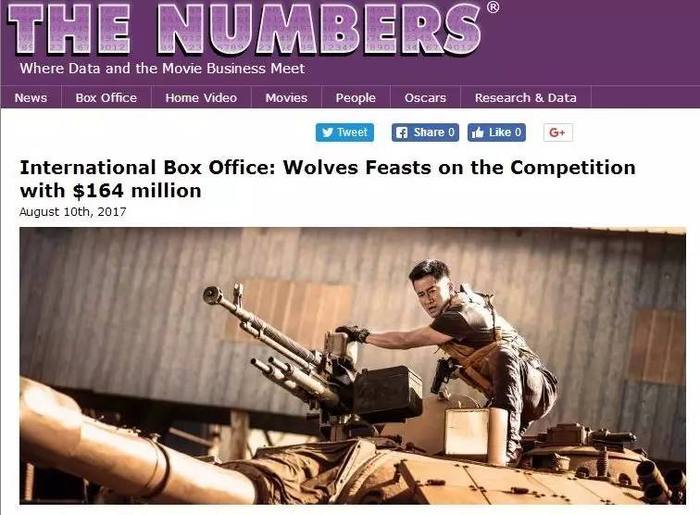 澳大利亚电影产业统计网站“The Numbers”在《战狼2》上映后六次报道了其优异的票房成绩。“The Numbers”表示,战狼一出便立刻将身后的《敦刻尔克》、《安娜贝尔》和《神偷奶爸3》等同期上映电影的票房成绩甩的无影无踪。